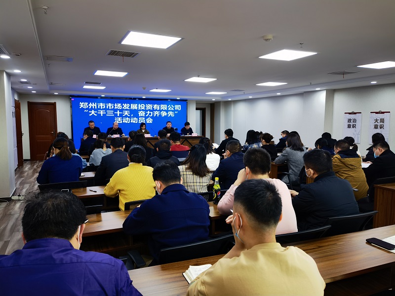 12月6日下午,鄭州市市場(chǎng)發(fā)展投資有限公司召開“大干三十天,奮力齊爭先”活動(dòng)動(dòng)員會(huì)。公司常務(wù)副總經(jīng)理趙潔,黨委委員、工會(huì)主席龐曉冰,黨委委員、總經(jīng)理助理孫濤,黨委委員、綜合管理中心總監(jiān)楊哲,黨委委員、財(cái)務(wù)管理中心總監(jiān)逯衛(wèi)川出席。