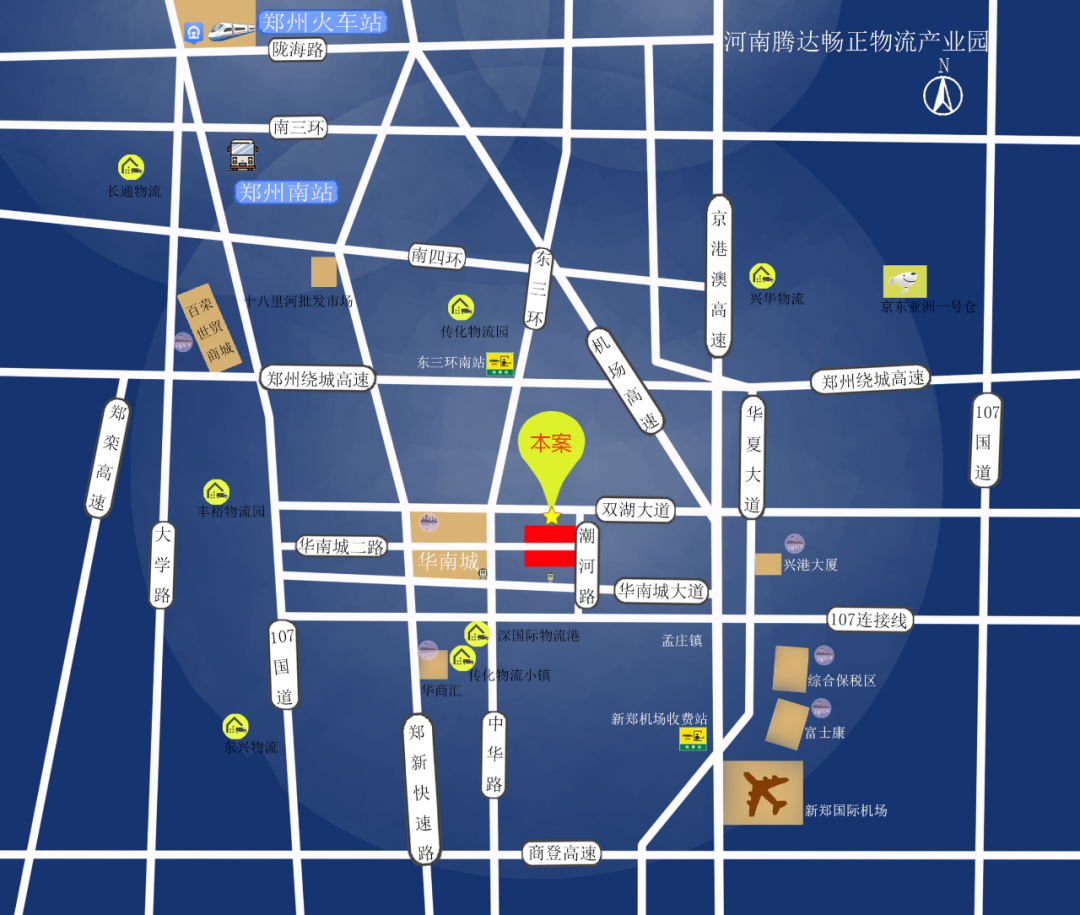 距離港區(qū)僅9公里,3分鐘抵達華南城,8分鐘抵達繞城高速,2分鐘抵達107國道,30分鐘抵達新鄭機場。緊鄰地鐵2號線華南城東站。