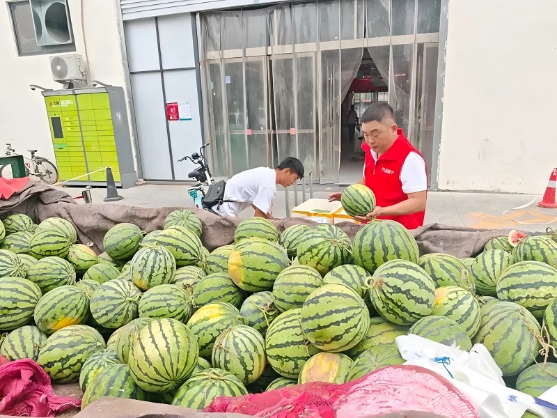 了解到這一情況后,市投集市未來路市場管理人員立即主動(dòng)上前,與瓜農(nóng)深入溝通,并迅速協(xié)調(diào)安排,將整車2000余斤西瓜轉(zhuǎn)運(yùn)至市投集市未來路市場內(nèi)避雨銷售。市場不僅免費(fèi)提供惠農(nóng)攤位,還通過線上線下渠道幫助推廣,號(hào)召市民朋友們愛心助農(nóng)。