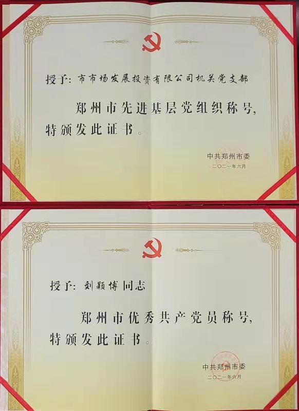 鄭州市市場發(fā)展投資有限公司在鄭州市“兩優(yōu)一先”表彰中獲兩項殊榮
